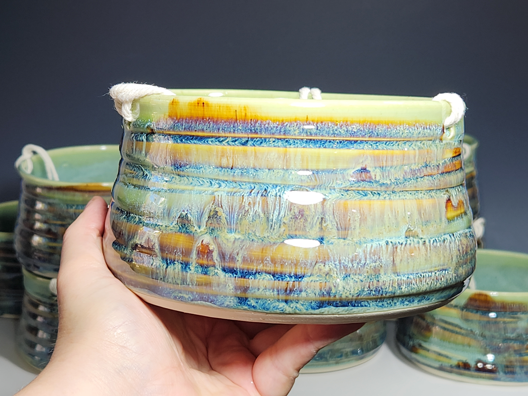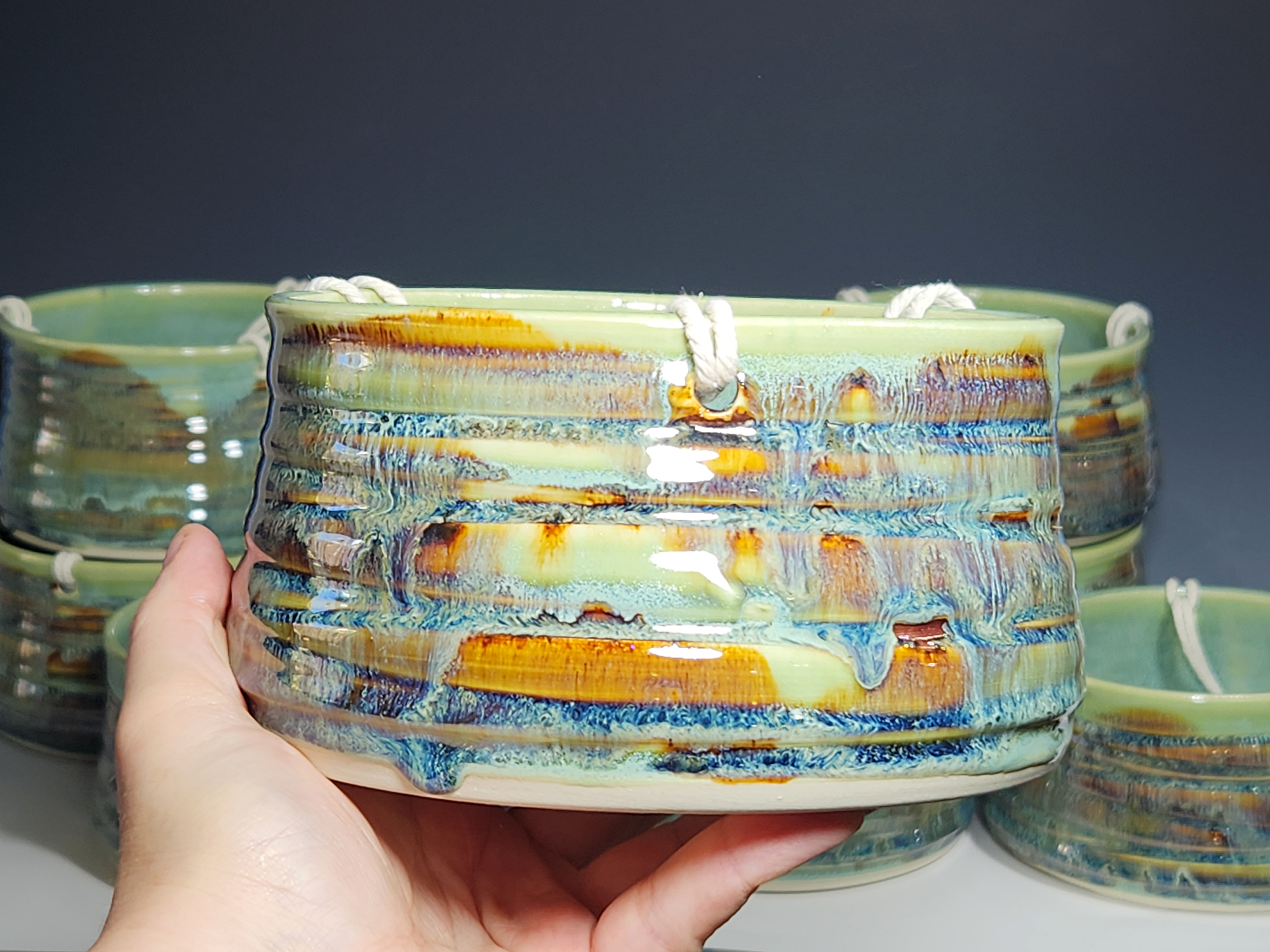 Hand-thrown Pottery Hanging Planter With or Without Drainage