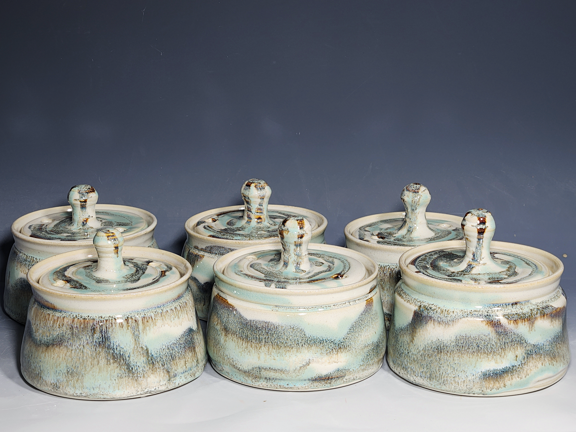 Every piece made by Kairos Klay is unique. No two pieces are exactly the same. Each piece is marked with the Kairos Klay stamp and year made. All functional ware sold by Kairos Klay is lead-free and food, microwave, and dishwasher safe.