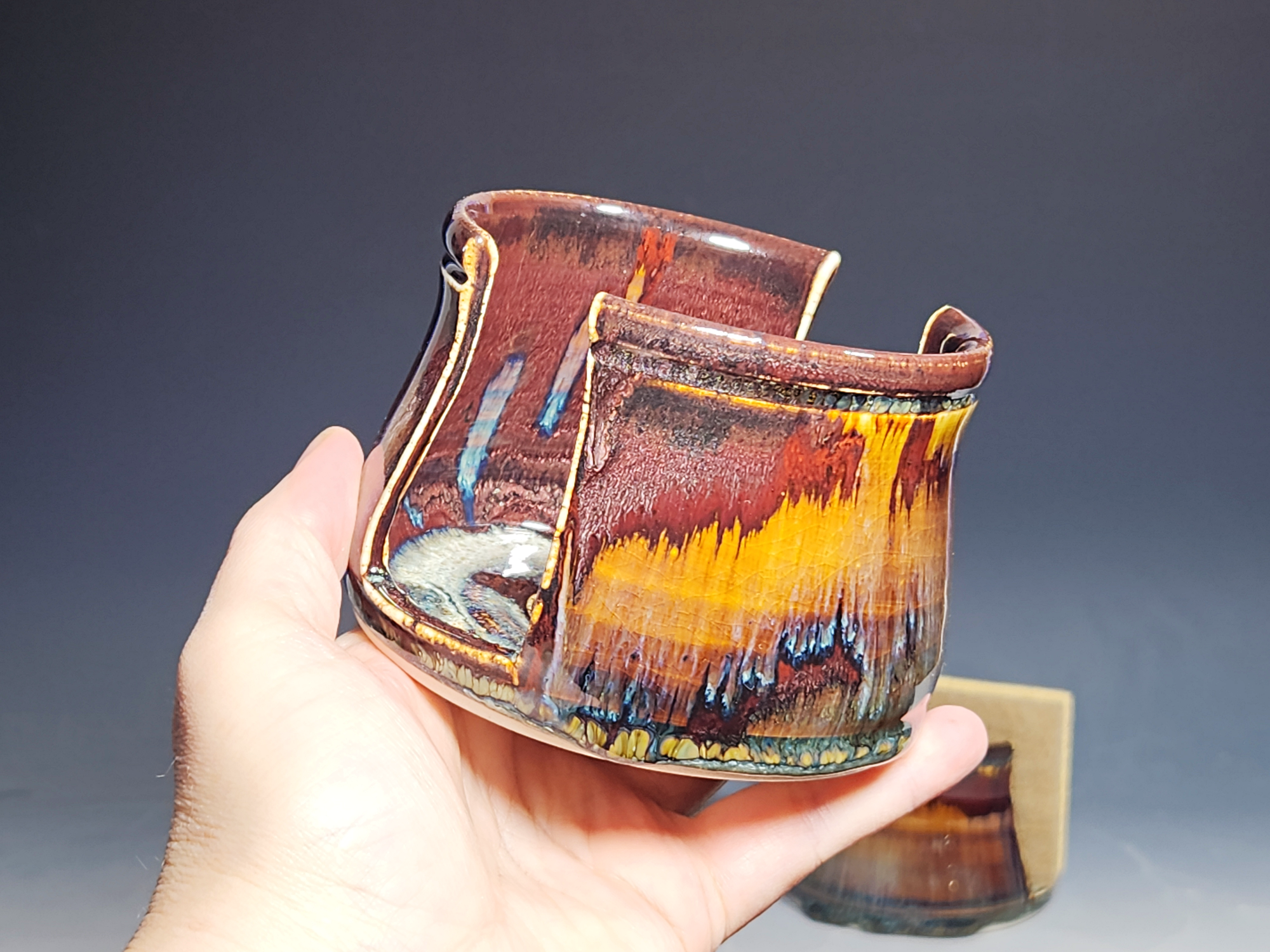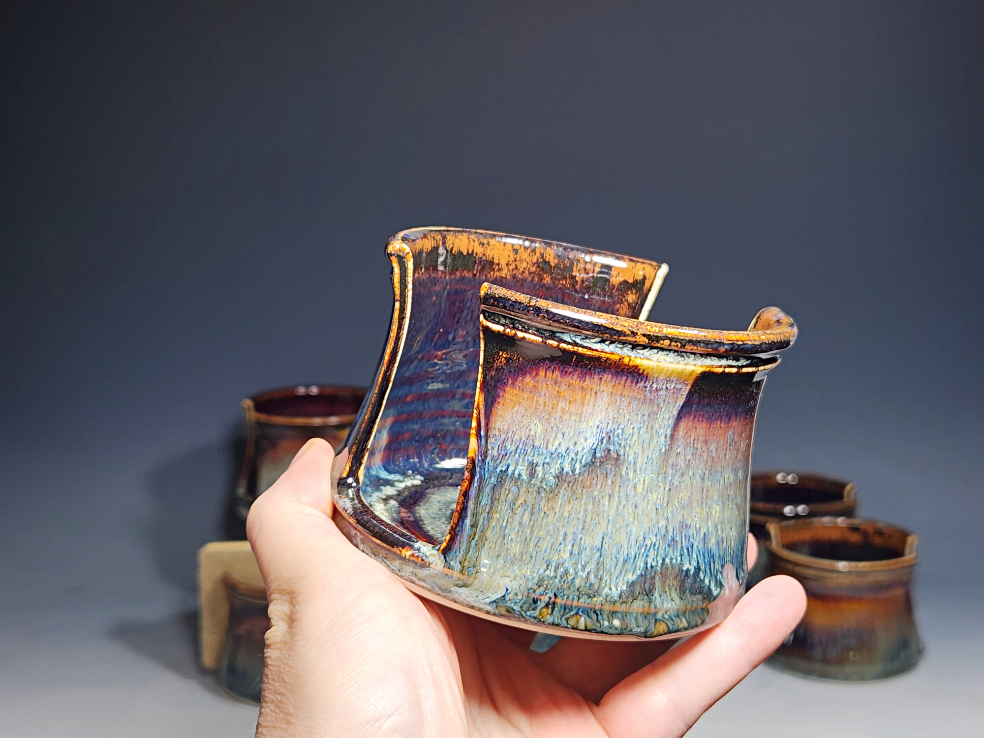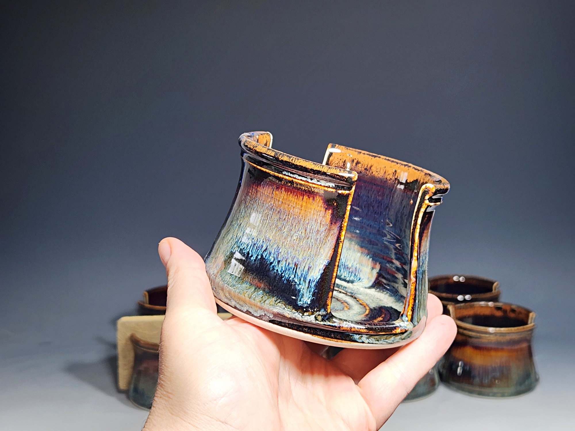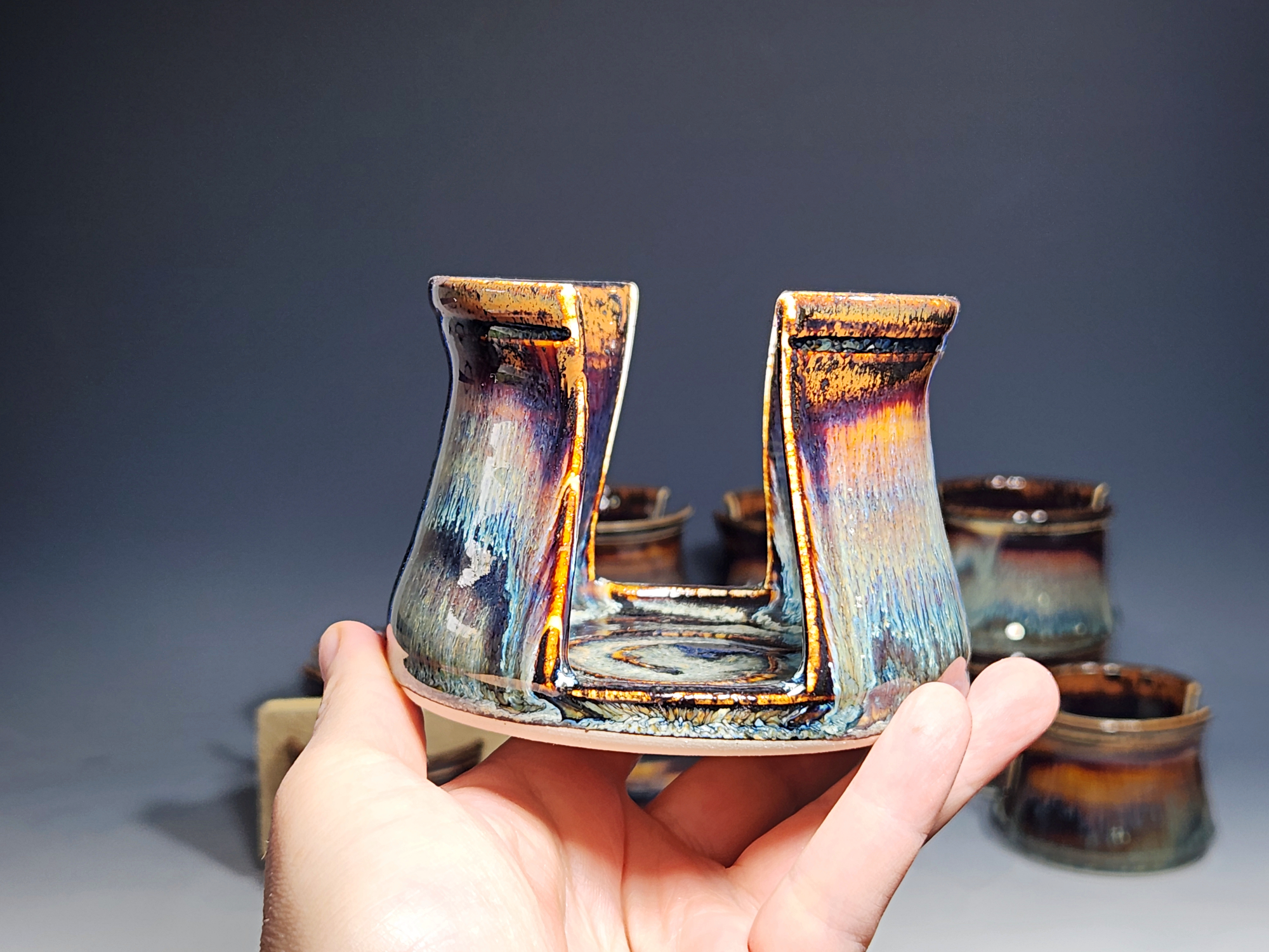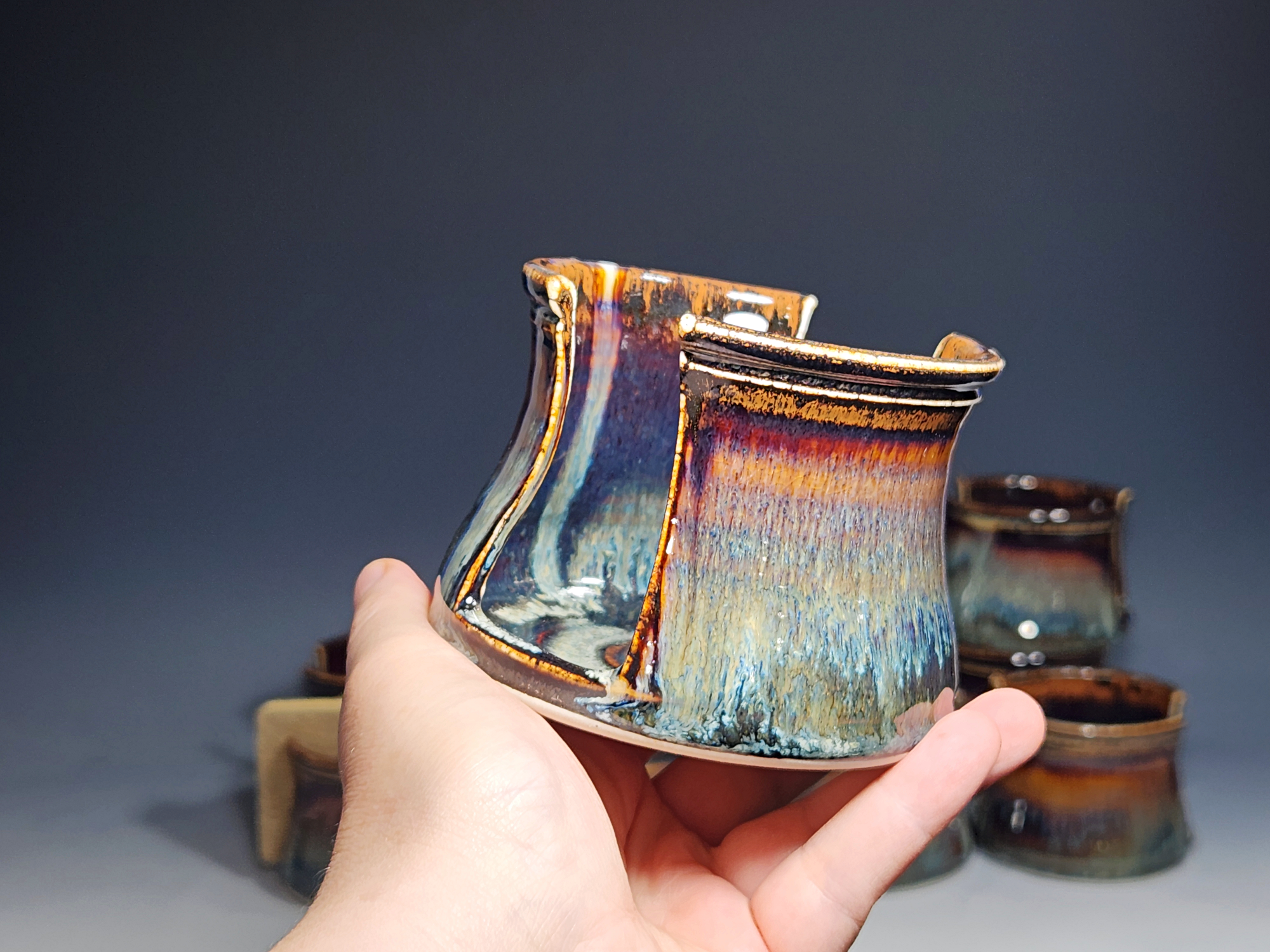 Every piece made by Kairos Klay is unique. No two pieces are exactly the same. Each piece is marked with the Kairos Klay stamp and year made. All functional ware sold by Kairos Klay is food, microwave, and dishwasher safe.