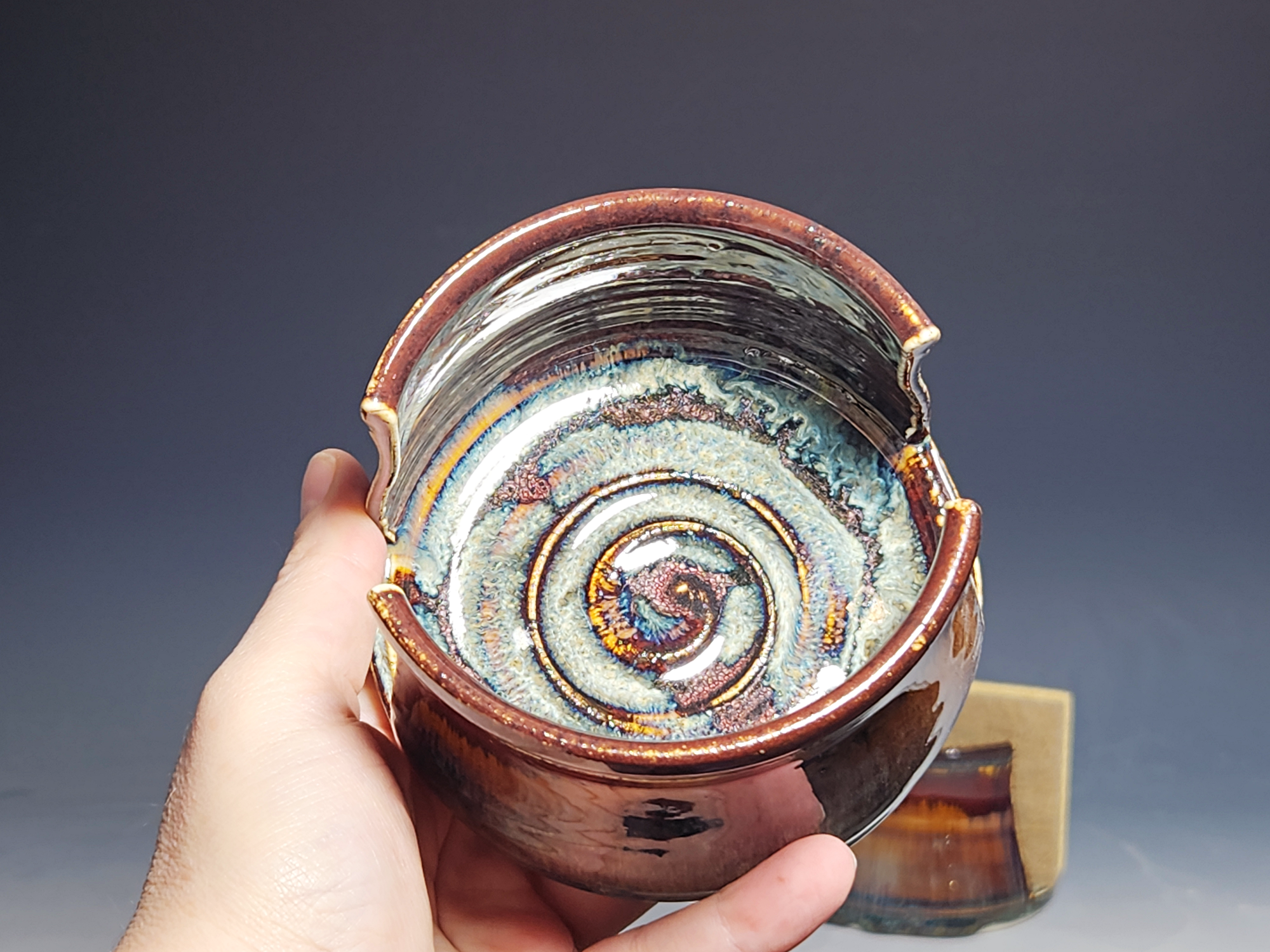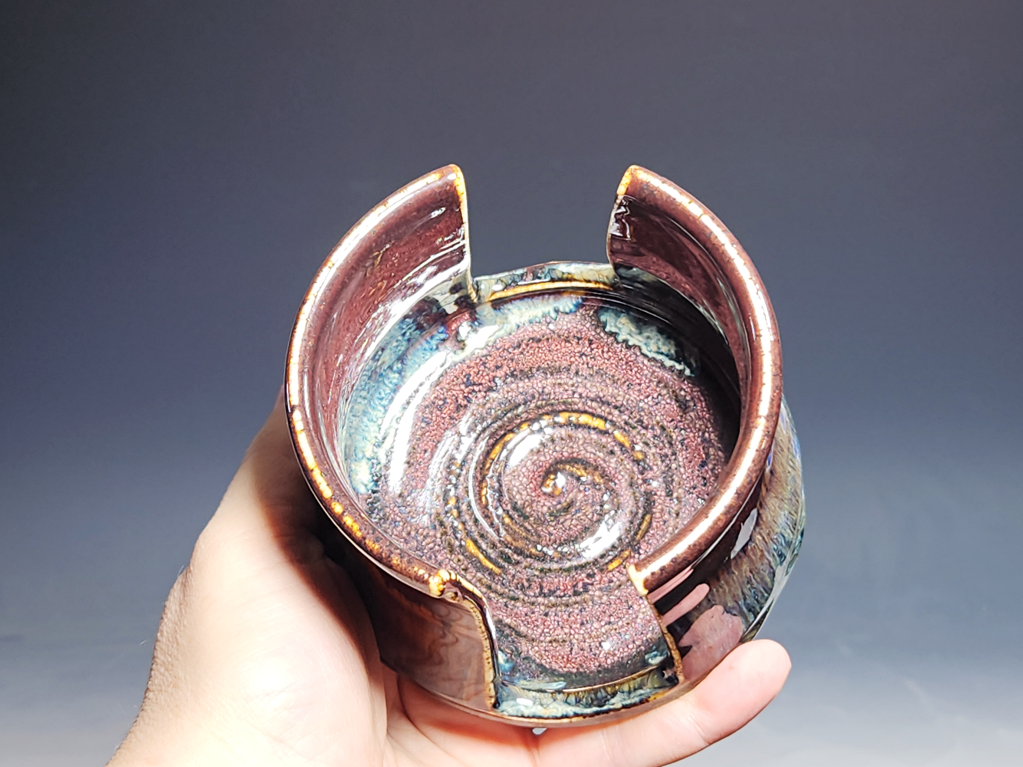 This is a variation on my glaze combination, “Thoreau’s Pond.” Please note, these are a little darker than the photos. I use photography lighting to show detail. Beautiful, functional kitchen sponge holder with a rich, variegated glaze is designed to elevate your kitchen sponges and allow them as much air flow as possible to dry faster and discourage the growth of bacteria. Helps keep your sink area organized and beautiful. Makes a great housewarming or bridesmaid’s gift.