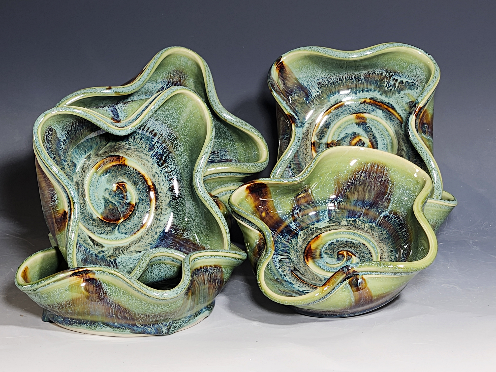 Every piece made by Kairos Klay is unique. No two pieces are exactly the same. Each piece is individually numbered with the year in which it was made, and hand-signed. All functional ware sold by Kairos Klay is food, microwave, and dishwasher safe.