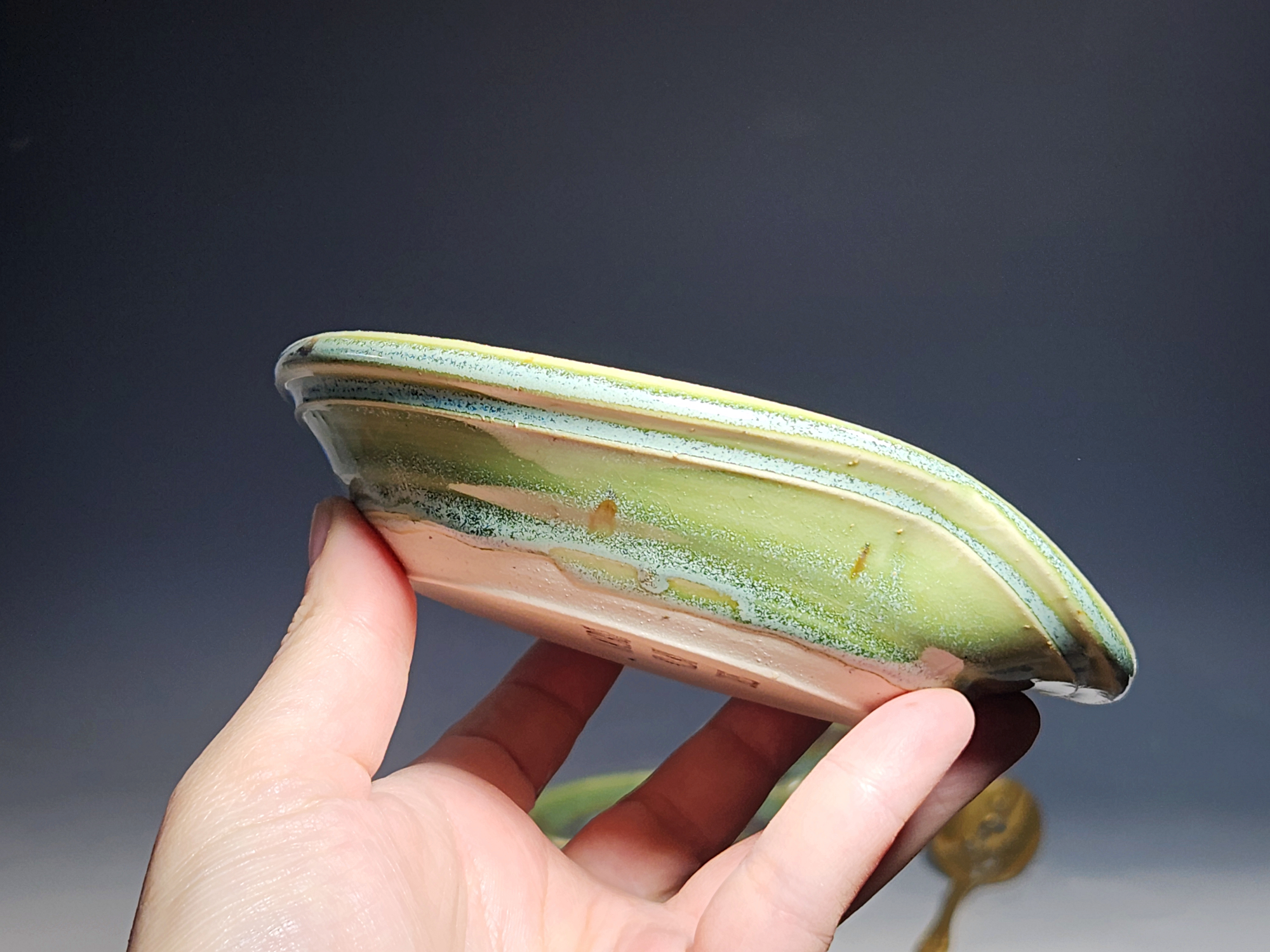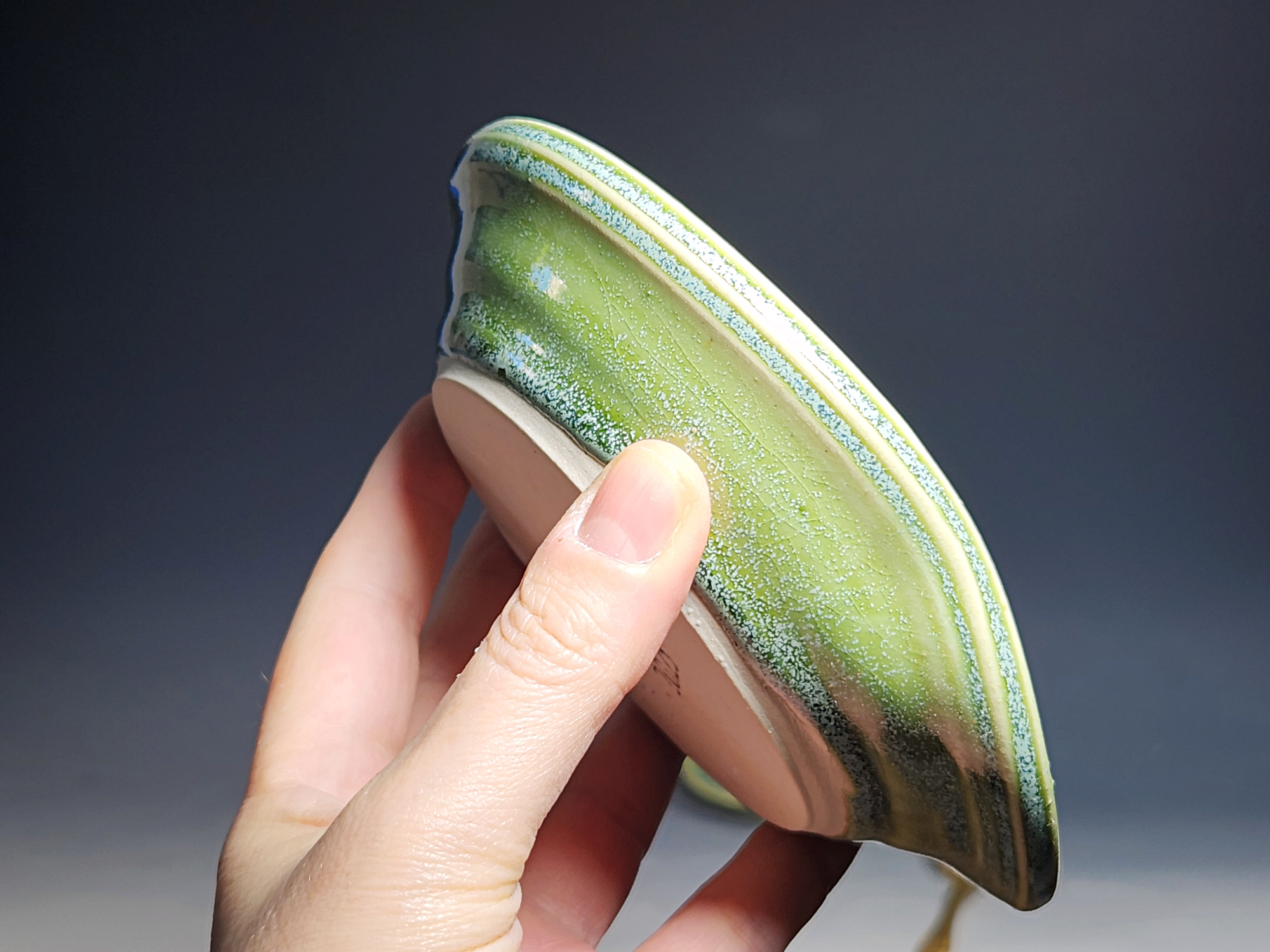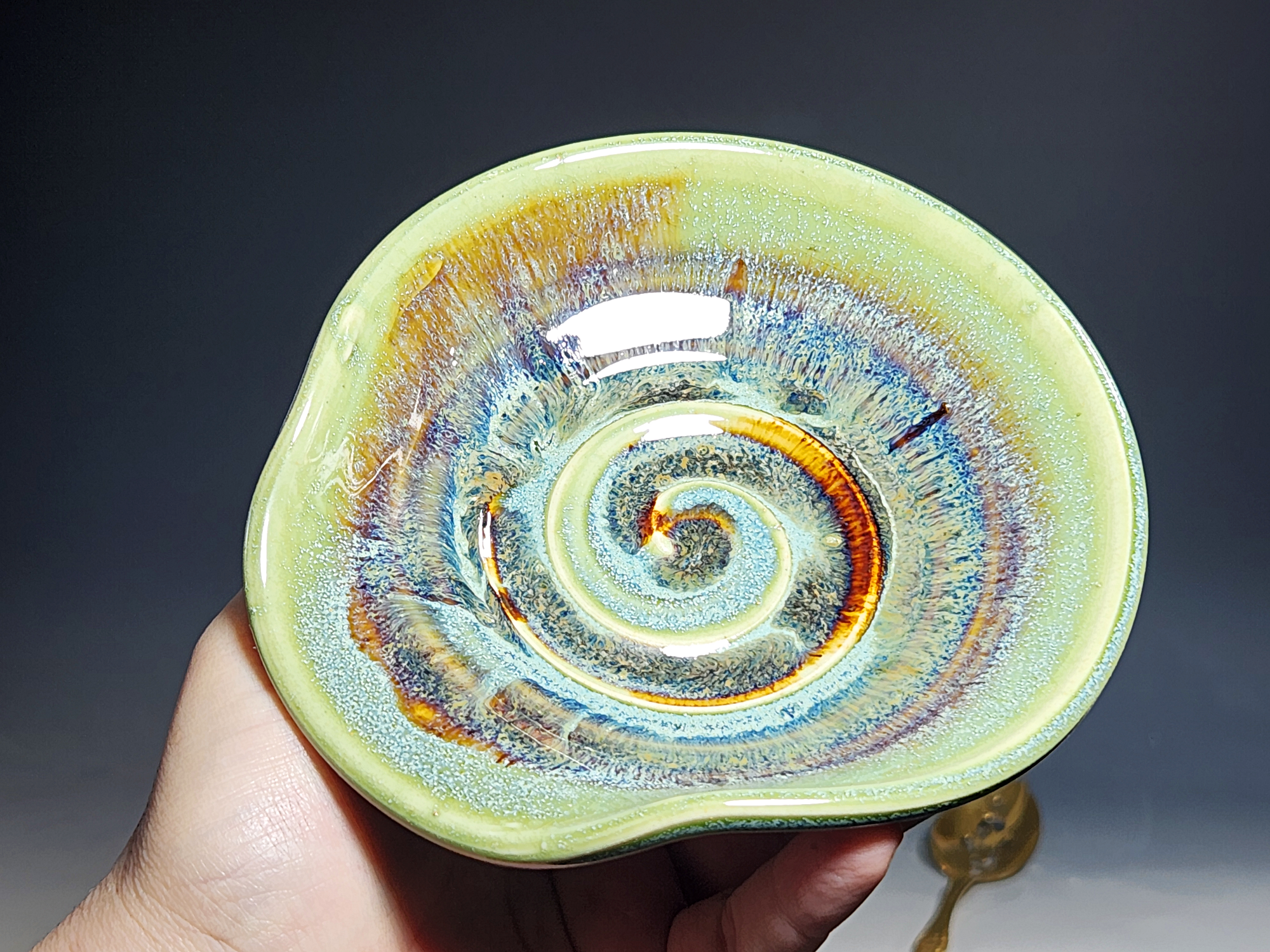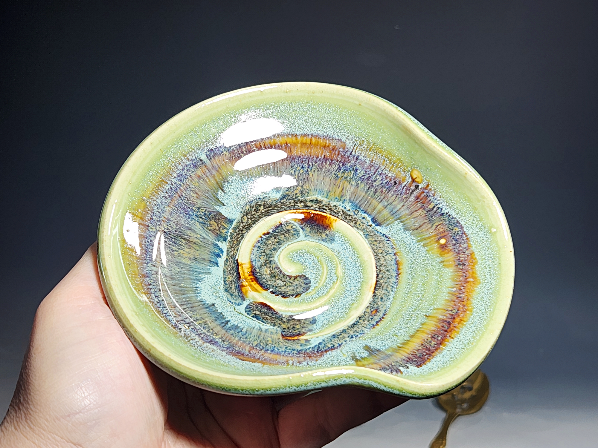 Approx. 5″ diameter. This listing is for one (1) spoon rest. Seconds flaws may include surface glaze issues such as crazing or crawling, messy bottoms, warping of the vessel, or a less well-made form. I also sell items as seconds that are not flawed but have no corresponding mate, or are a form or glaze that I no longer use.