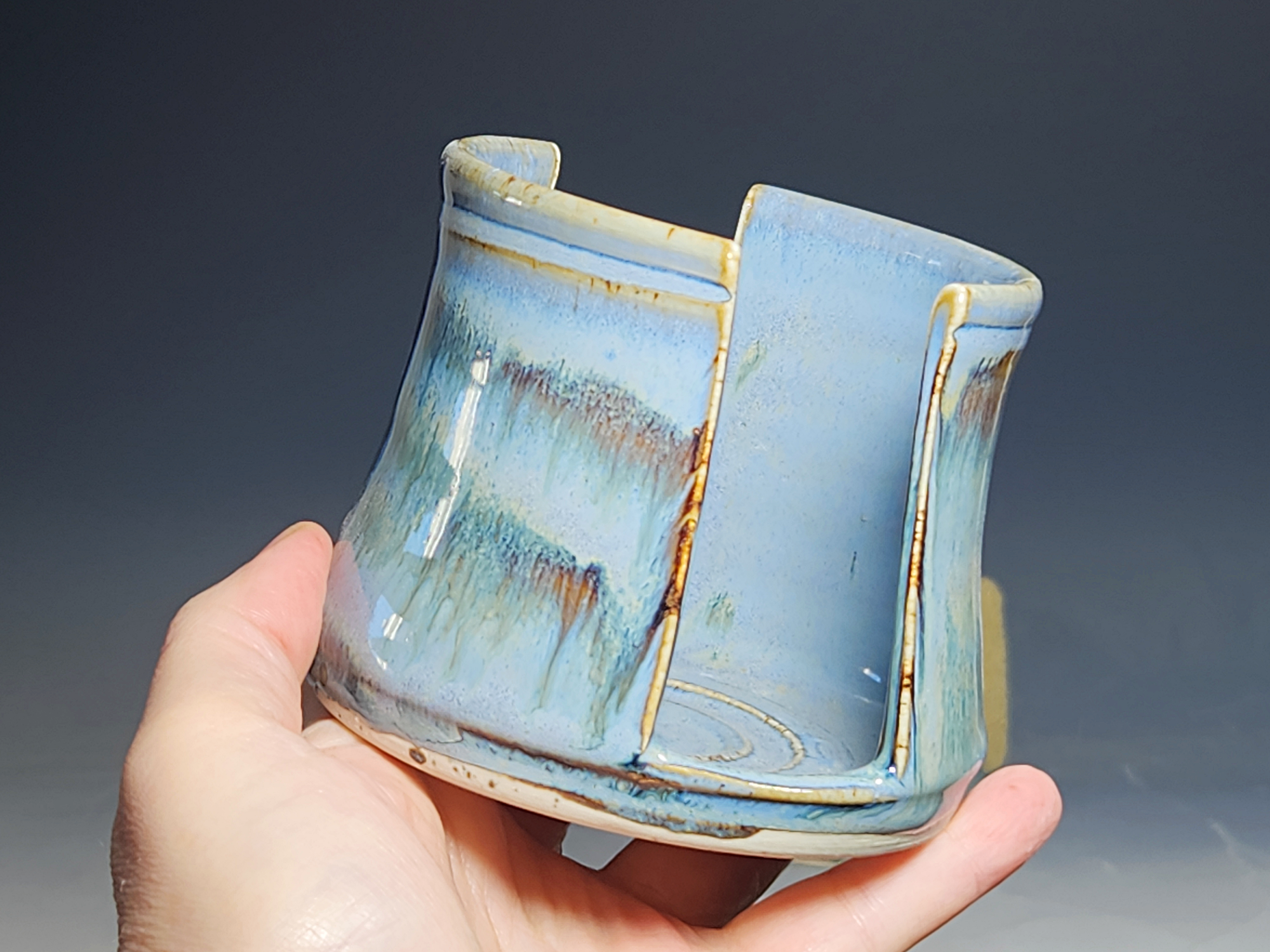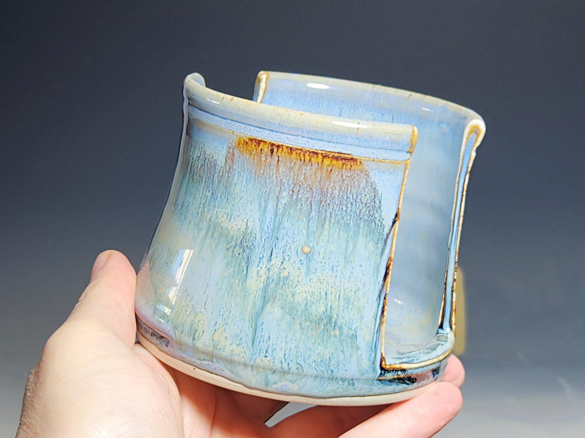 These pieces are what I call “beautiful seconds,” flawed, but still safe, functional, and beautiful. Beautiful, functional ceramic kitchen sponge holder with a rich, variegated glaze is designed to elevate your kitchen sponges and allow them as much air flow as possible to dry faster and discourage the growth of bacteria. Helps keep your sink area organized and beautiful.